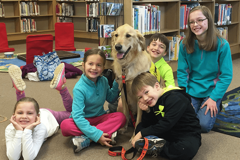 “The kids absolutely love Cooper,” said Tollar. “I created his own Facebook page so kids could connect with him outside of the visits. They bring him gifts and come to the library every time we’re there just so that they can read to him. Seeing how much happiness and confidence Cooper brings, just by being with them for a little while, proves to me the benefits that pet therapy has on children.”