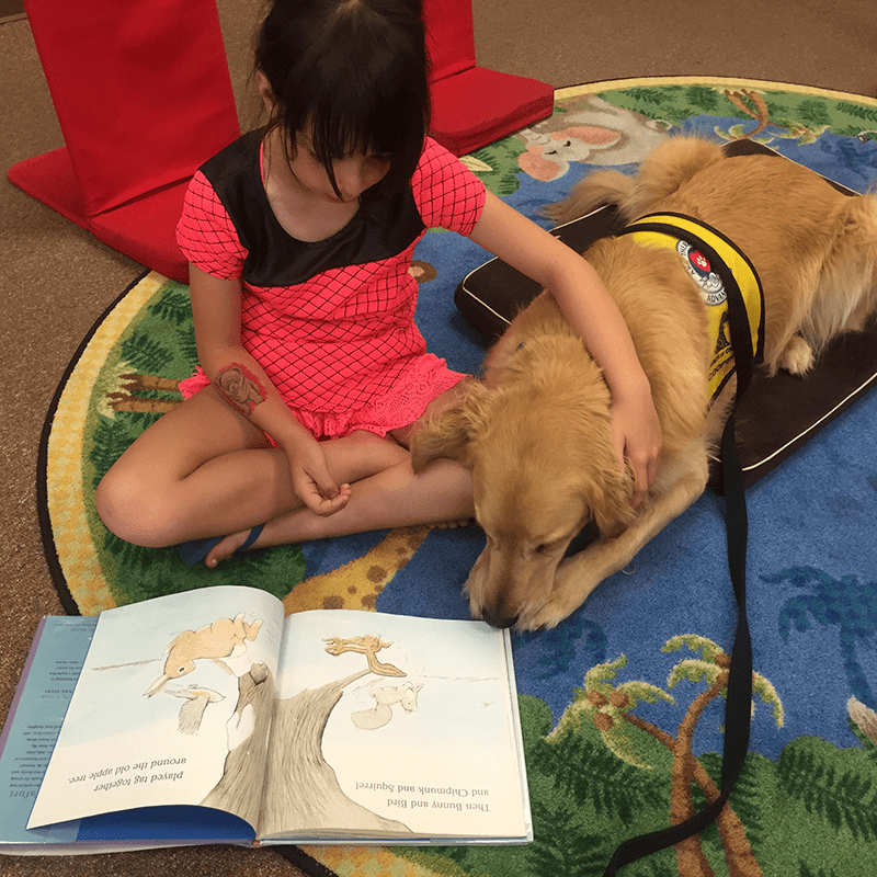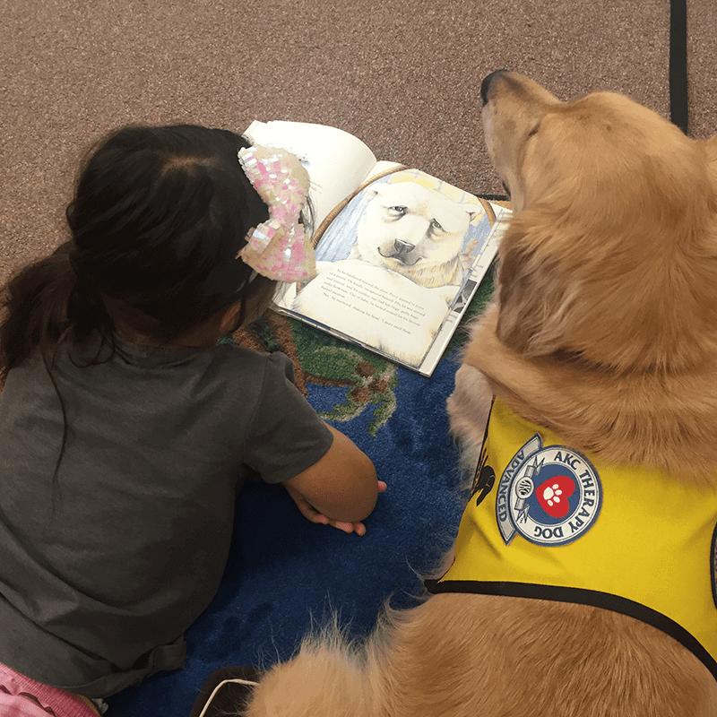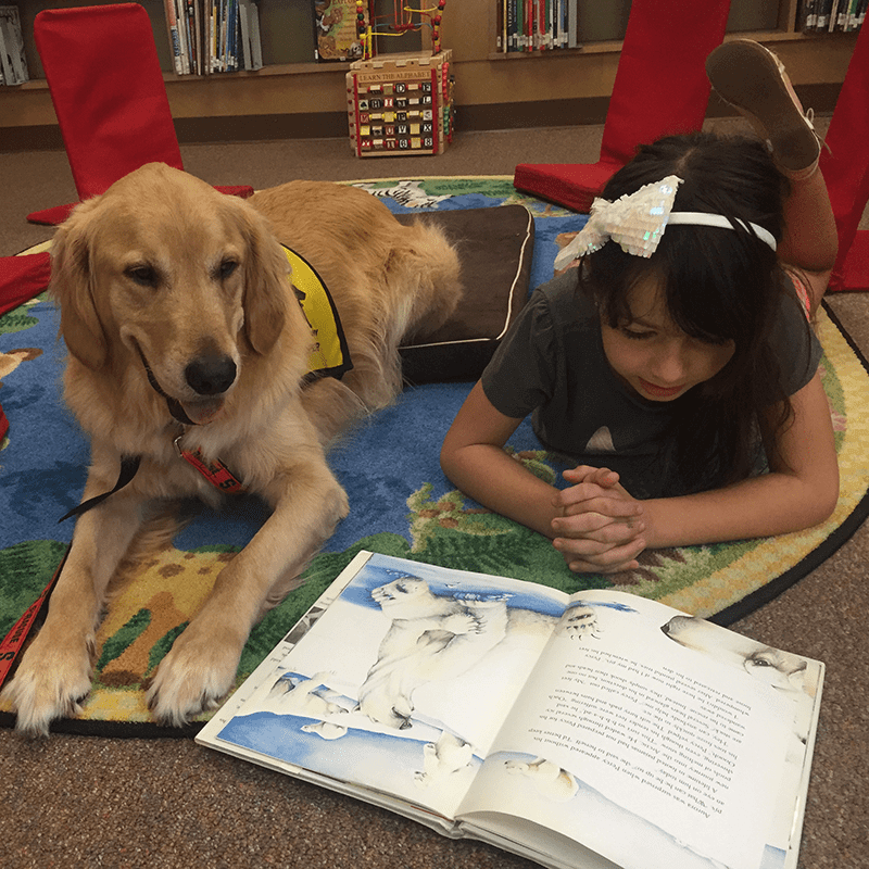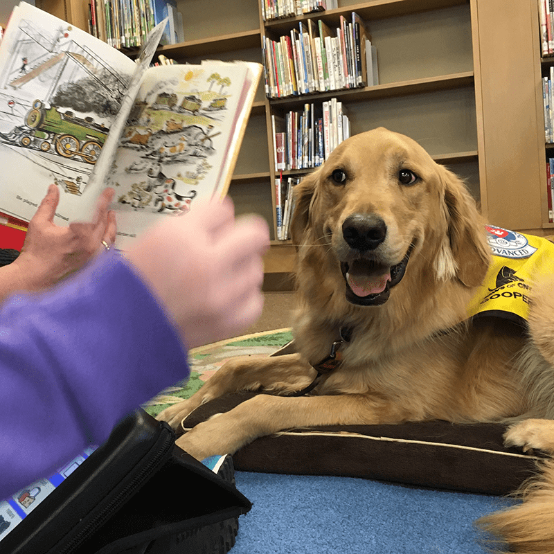 “The kids absolutely love Cooper,” said Tollar. “I created his own Facebook page so kids could connect with him outside of the visits. They bring him gifts and come to the library every time we’re there just so that they can read to him. Seeing how much happiness and confidence Cooper brings, just by being with them for a little while, proves to me the benefits that pet therapy has on children.”